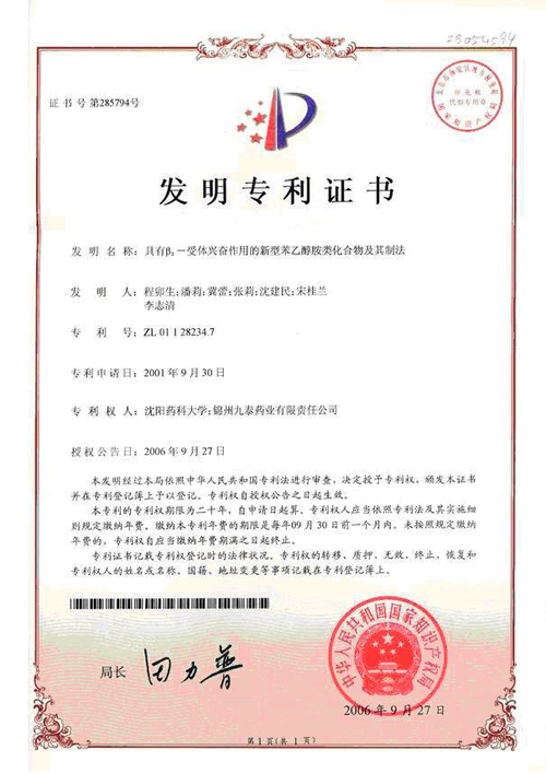 該產(chǎn)品正處于Ⅲ b臨床研究階段,已獲七項專利證書。 錦州九泰藥業(yè)與沈陽藥科大學合作開發(fā)的國家一類新藥鹽酸川丁...