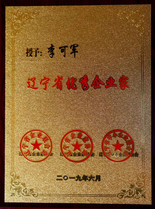 公司董事長李可軍榮獲“遼寧省優(yōu)秀企業(yè)家”榮譽(yù)稱號