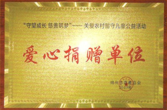 在“守望成長、慈善筑夢”關(guān)愛農(nóng)村留守兒童公益活動(dòng)中,公司被錦州市慈善總會授予“愛心捐贈(zèng)單位”榮譽(yù)稱號。